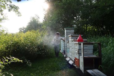 Exciting year for the bees in 2023: record number of hives, honey flow and hive performance was strong, honey extraction is in progress; summer is showing signs of turning to fall; summer flowers are blooming nicely